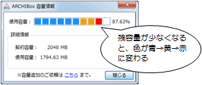 - 使用容量が契約容量に近づいた場合は、ファイルの削除または容量の追加をご検討ください。