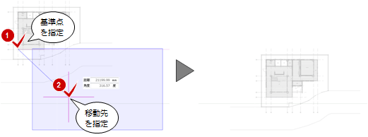 「下図移動」を選びます。 - 下図の移動の基準点をクリックします。