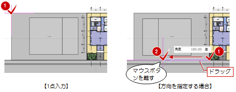 オブジェクトの方向を指定する場合は、配置位置でマウスをドラッグしながら方向を決めます。