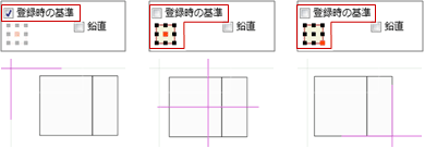 (操作については、「樹木をある間隔でまとめて配置するには」を参照) - オブジェクトの基準点を変更して配置したい場合は、「登録時の基準」をOFFにして基準点を変更します。