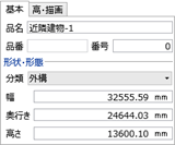 - 「配置高さ基準」やプロパティ「基本」タブの品名、分類、大きさは、汎用オブジェクトを登録したときの情報がセットされます。サイズを変更して配置することも可能です。
