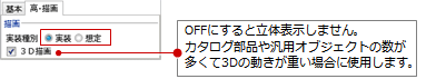 - プロパティ「高・描画」タブで「実装」「想定」を選びます。