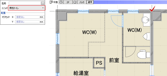 「ユニット配置」を選びます。 - 配置するユニットを選びます。