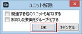「ユニット解除」を選びます。 - 解除するユニットをクリックします。