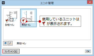- 「ユニット管理」ダイアログの「コレクション」をクリックします。