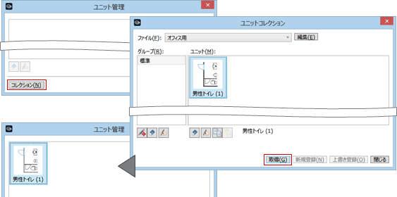 「ユニット管理」でユニットコレクションファイルに登録します。