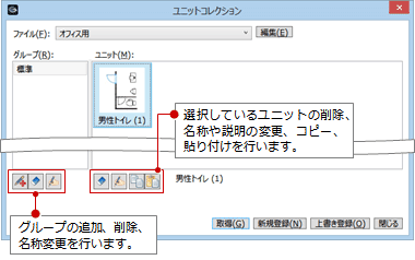 - グループの追加や削除、ユニットの削除、コピーなどを行う場合は、次の機能を使用します。
