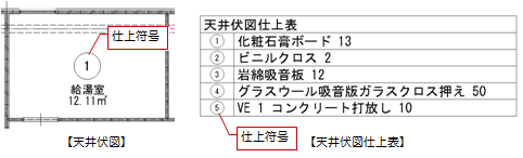 仕上一覧には、配置されている天井仕上が表示されます。 - 「符号」を設定します。