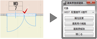 建具仕様」に入らずに、建具表登録済の建具をその場で編集したい場合は、このコマンドを使用します。