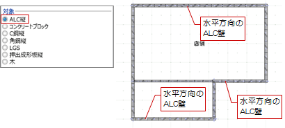 ここでは、次図に示す水平方向にあるALC壁の割り付けを変更する操作を解説します。