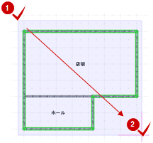 「矩形範囲」に変更します。 - 割り付けを変更する壁を囲むように範囲を指定します。