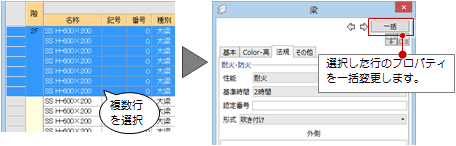 「プロパティ」を使用すると、複数の部材の複数の項目をまとめて変更することができます。