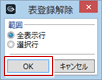 「表登録解除」をクリックします。- 「範囲」の「選択行」にチェックを付けて、「OK」をクリックします。