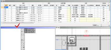 - 「建具表」タブの姿図ビューをアクティブにします。