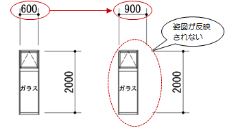- 確認画面で「はい」をクリックすると、建具の3D形状や幅・高さなどプロパティを変更しても、姿図には反映されなくなります。例えば、建具幅を大きくしても、寸法には反映されますが、姿図は変更前の建具幅のままです。建具の3D形状や幅・高さなどに変更がないときに使用してください。