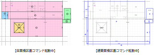 「建築面積区画」メニューのコマンドを起動したときは、床面積区画が非表示になります。