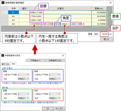 計算式や面積の小数点以下桁数と丸めは、