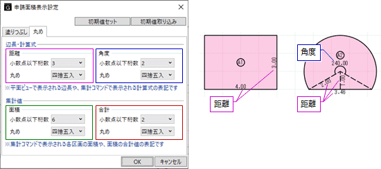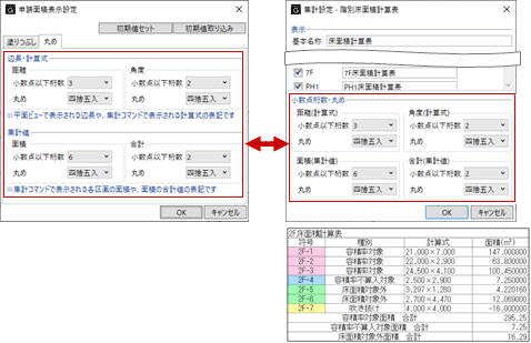 「申請面積表示設定」の「丸め」タブと相互連動します。