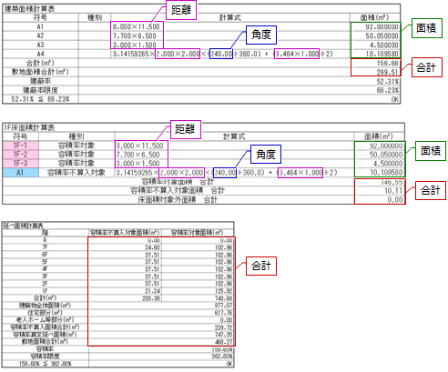 「延べ面積・容積率計算表」などにも連動します。