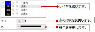 - コマンドサポートウィンドウの「端点挿入」の項目にチェックを付けると、始点、終点の位置にも点が入ります。