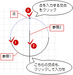 - 指定した要素の交点が複数でない場合、2つの要素を指定した時点で交点に点が入力されます。