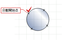 - 「塗り」メニューで入力した円の場合、参照要素を指定した後、分割開始点を指定します。