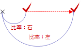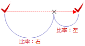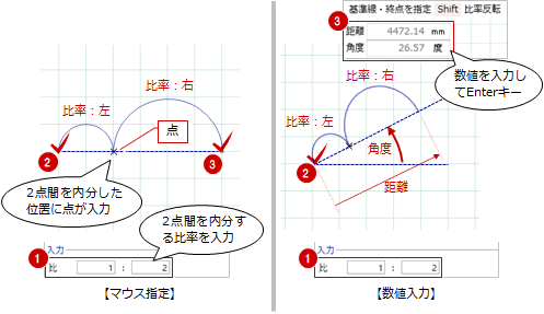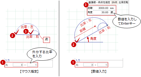 - Shiftキーを押しながら指定すると、内分点の比率が反転します。