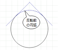 - Shiftキーを押しながら円弧の中心位置を指定すると次図のように円弧が反転します。