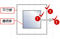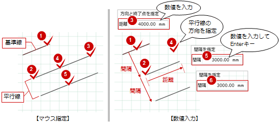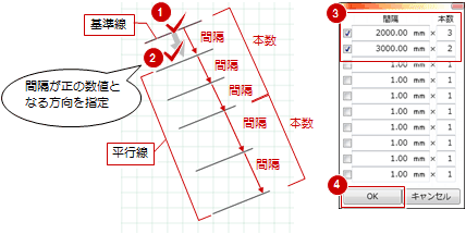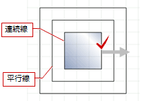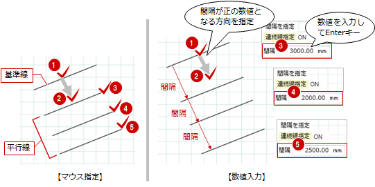 - 楕円弧とベジェ曲線は、平行線の対象に指定することはできません。