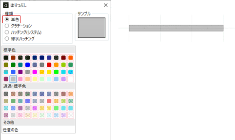 線状塗りを単色で塗りつぶす場合は、「単色」をONにして「色」を設定します。