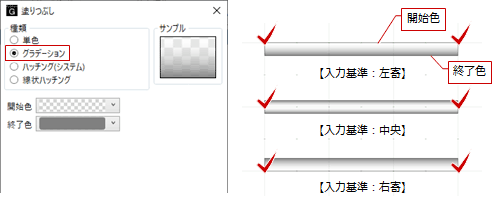 線状塗りにグラデーションをかける場合は、「グラデーション」をONにします。