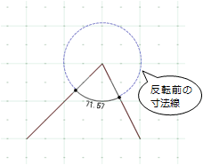 - Shiftキーを押しながら寸法線の位置を指定すると次図のように寸法線が反転します。