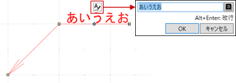 - コマンドサポートウィンドウの「引出項目」が未入力のまま引出線の入力位置を指定した場合は、ダイアログが表示されて文字入力が可能です。