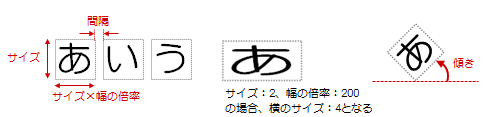 「サイズ」「幅の倍率」「間隔」「傾き」