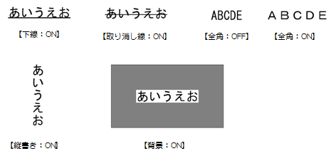 - 「背景」がONの場合、「オプション(CAD環境)」の「システム色」にある「背景」の色で文字の背景を塗りつぶします。