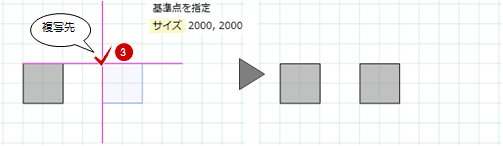 「コピー」をクリックします。- データの基準点をクリックします。
