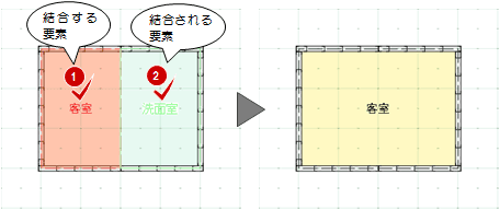 「結合」をクリックします。- 結合する要素をクリックします。