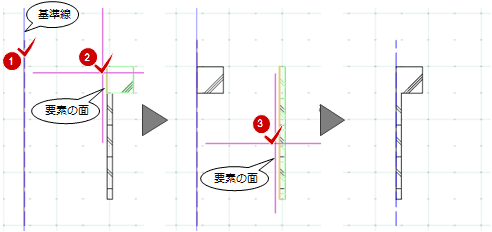 - 内壁仕上・外壁仕上の場合は、仕上面のほかに、仕上の入力基準線も指定できます。