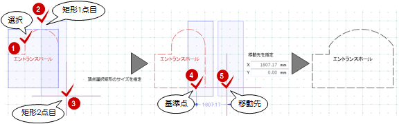 - 移動する矩形範囲の1点目と2点目をクリックします。