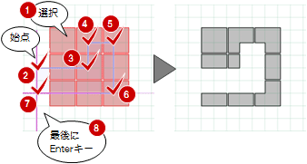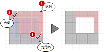 - 削除する範囲の始点と対角点をクリックします。