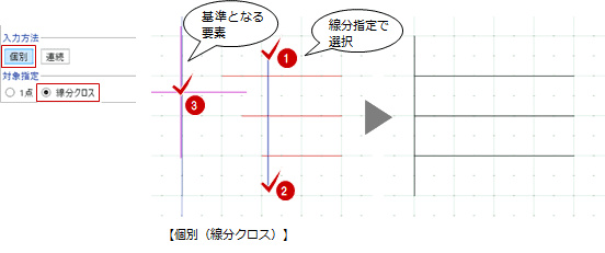指定した線上まで伸縮したり、指定した2つの線を交点で結びます。