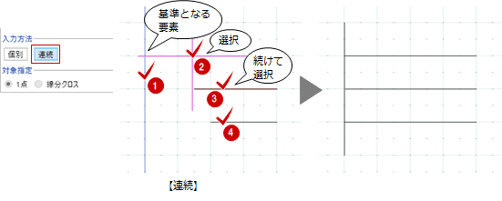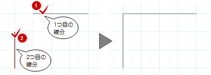 「結線」をクリックします。- 1つ目の線分をクリックします。