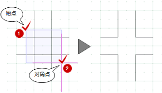 「包絡」をクリックします。- 包絡する範囲の始点と対角点をクリックします。
