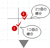 | 同一 | 始終点が完全に一致する線分を見比べて、優先順位の低いものが削除されます。 ①と④ ②と⑤ ③と⑥ ![]() |