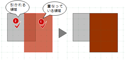残す方の領域を1つ目に指定します。 - 2つ目の領域をクリックします。
