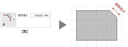 - 面取りの形状と長さなどを設定します。
