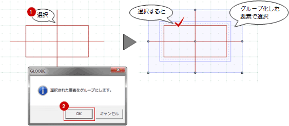 「選択」で選択できます。 - すでにグループ化されているデータと他のデータをグループ化するときは、次の確認画面が表示されます。