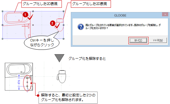 グループ化されているデータを解除して良い場合は「はい」をクリックします。「いいえ」をクリックするとグループ化は行われません。