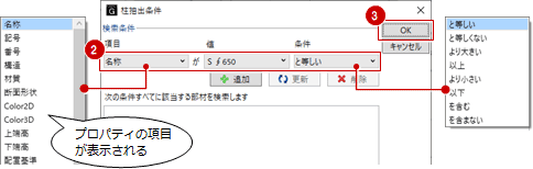 - 検索条件の「項目」「値」「条件」を設定して、「OK」をクリックします。