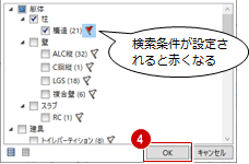 - 「選択フィルタ」ダイアログに戻り、検索条件を設定したデータの旗マークは